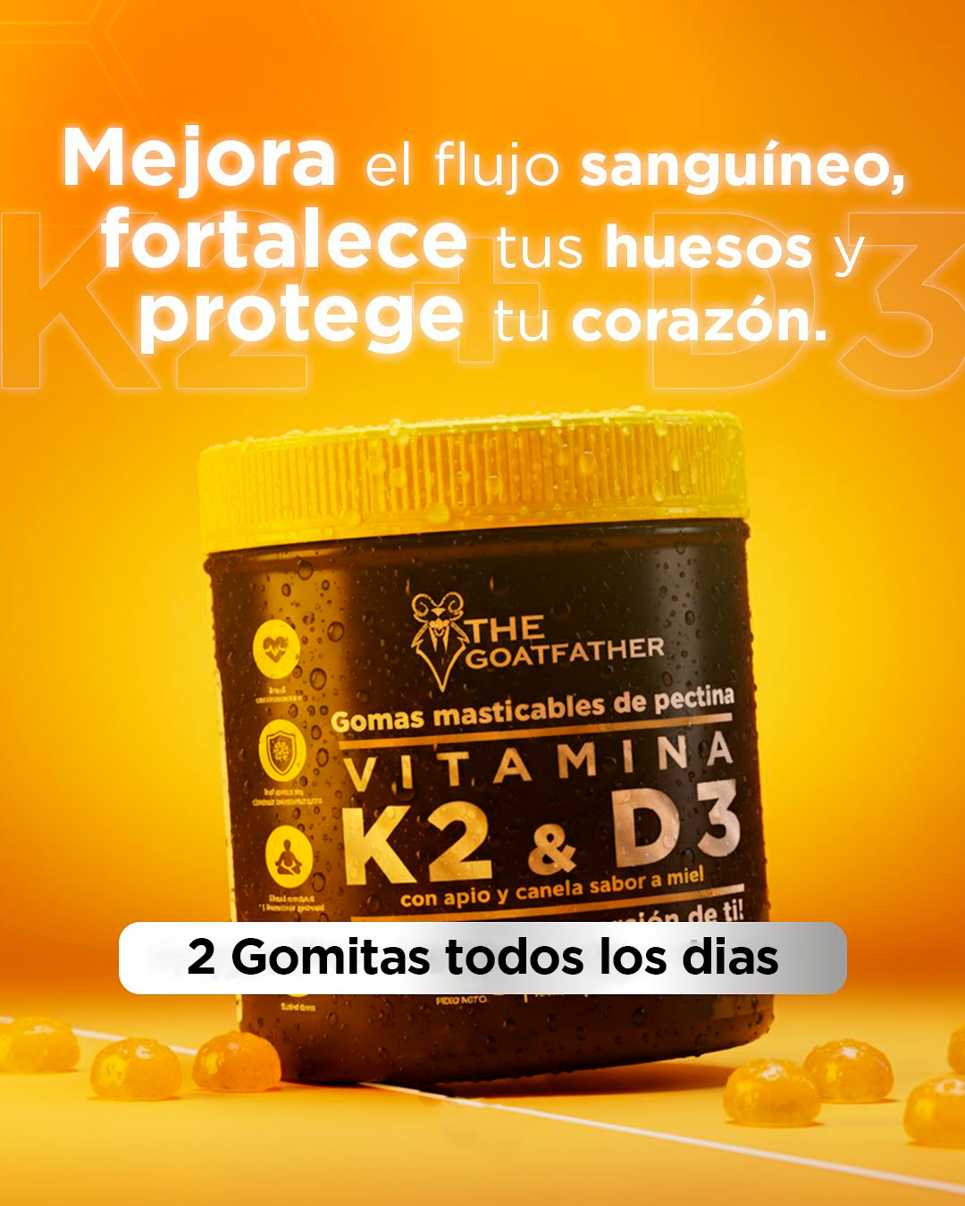 Sabor A MIEL GOATFATHER, Taumatina, Color Amarillo, Vitamina K2, Vitamina D3.
